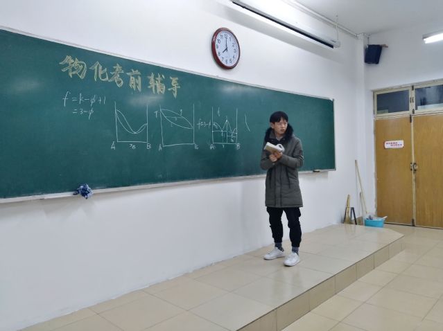 为切实落实公司学风建设工作,帮助同学解决《物理化学》课程学习中的困惑,更有针对性地备战期末,使同学们在期末考试中能取得好成绩,12月11号,生命科学公司制药工程1704班在13号教学楼222教室举行物理化学辅导活动。此次活动由该班学习委员韩馨萍主持,特邀请魏萌、魏红梅、张义丰、龚畅达、刘信强以及黄新磊六位同学为大家梳理知识点、考点,班级全体成员共同参加。