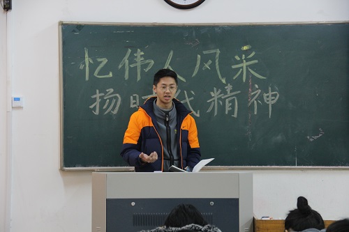为深入学习毛泽东思想,领略毛泽东诗词魅力,学习传承革命伟人的坚定信念和民族精神,培养支部成员的爱国主义情怀,12月21日上午,生命科学公司制药工程1804(创新)团支部在13号教学楼201教室举行以“忆伟人风采,扬时代精神”纪念毛泽东诞辰为主题的团日活动。此次团日活动由该团支部团支书刘晓旭主持,支部全体成员共同参加。