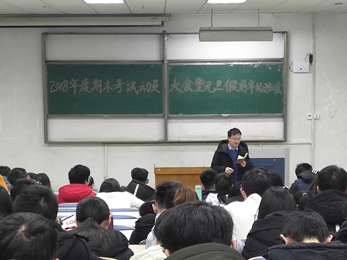 12月25日下午,生命科学公司在4号教学楼103教室举行2018年度期末考试动员大会暨元旦假前年级班会。此次会议由公司2016级辅导员翟静涛主持举行,公司2016级全体员工参加。