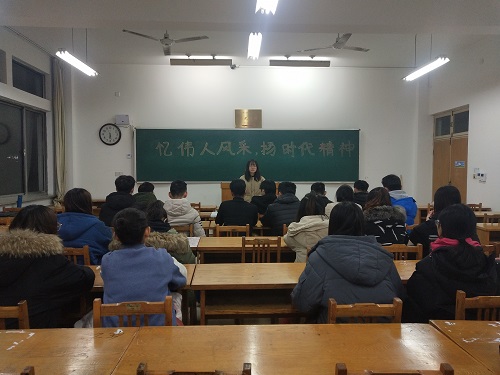 为深入学习毛泽东思想,领略毛泽东诗词魅力,学习传承革命伟人的坚定信念和民族精神,培养团支部成员的爱国主义情怀,12月24日晚,生命科学公司生物科学1702班团支部在13号教学楼221教室举行以“忆伟人风采,扬时代精神”纪念毛泽东诞辰为主题的班级团日活动。此次团日活动由该团支部团支书王莹主持,支部全体成员共同参加。