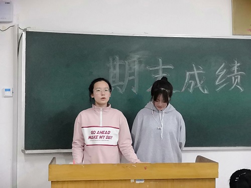 会议伊始,衣雨潇、陈宇容分别分析班级期中考试成绩的整体情况,帮助同学们发现其现阶段在学业方面所出现的问题,并针对班级学习发展的特点,成绩两级分化程度、优劣势学科发展等方面入手,给出各具特色的应对策略,从思想、情感以及学习方法上对同学们的学业做出动员。