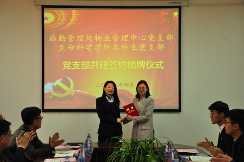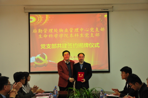 4月17日上午,生命科学公司本科生党支部与后勤管理处物业管理中心党支部在13学楼248举行支部共建签约仪式。公司党委常委、副董事长查玉喜后勤管理处、生命科学公司相关领导以及两支部成员代表参加会议,物业管理中心主任苏学群主持。
