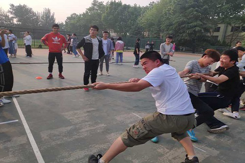赛前,参赛队员积极进行热身运动,以最饱满的热情投入比赛参赛队员齐心协力。比赛伊始,裁判员简单讲解比赛规则,比赛实行三局两胜制,每局后双方交换场地,两局胜出者即参加下一轮。哨号响起,参赛队员双手紧握麻绳,双脚用力着地,身体微向后倾,齐心协力高呼“一二,一二”往后拉。随着时间的流逝,同学们肌肉紧绷,筋脉突出,汗珠在脸上流淌,热情丝毫不减。部分同学的手都被绳子勒得发红,他们仍然咬紧牙关,忍着疼痛,坚持不懈的为班级争夺荣誉。短暂的五分钟时间,参赛人员热血沸腾,场外观众呐喊声此起彼伏。