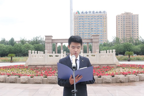 在国旗下,公司青年代表第十七届员工会主席张伟做题为“峥嵘七十载,逐梦新青年”演讲,通过回顾新中国成立70周年以来祖国建设发展的伟大成就及涌现的青年俊杰事迹,号召广大青年学子要奋发向上,担当作为,以优异成绩向山理工建校63周年和祖国70周年华诞献礼。