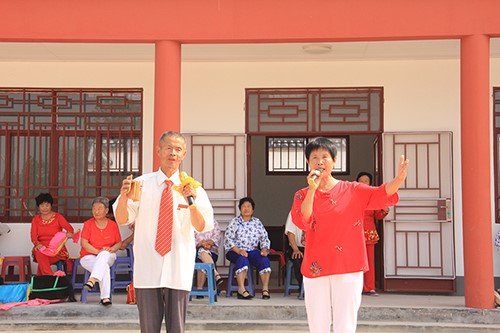 张显祯告诉实践团,年纪最轻的演员是64岁,在烈日下演出的老人们精神焕发,神采奕奕,并热情地与实践团的老员工们交谈,欢声笑语回荡在古桑树林间。