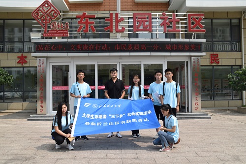 天空中,烈日炎炎,比起以往,太阳光格外刺目,实践队队员们带好调研问卷和其他所需物品,乘坐公交车来到泰和花园小区,在此展开为时一天的走访调研活动。队员们兵分三路,分别对周围商铺、小区居民、小区物业和东北园社区进行走访调研。