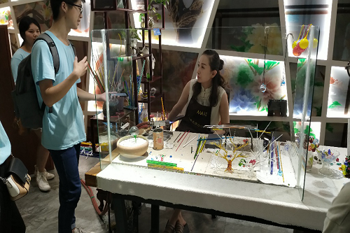 实践团采访到一位从事琉璃行业二十余年的艺术馆师傅,她谈起对于琉璃文化传承的见解,她讲到:“琉璃自古以来是博山传统产业之一,而现阶段存在的问题并非复杂的制作工艺而是创新,它需要一定的绘画基础和设计创作,而人立琉璃艺术馆正是通过开设体验馆,吃、住、玩、乐一体化,使游客充分体验琉璃之美。”