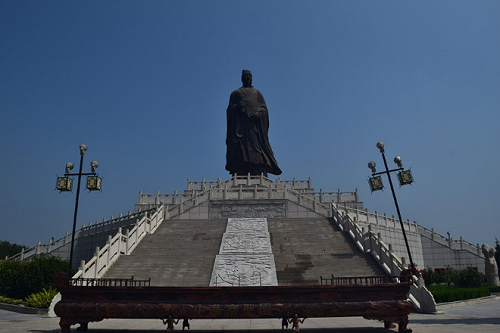 再回去的路上,通过跟工作人员的交谈了解到,范蠡像的正门只有在大型祭祀的时候才会打开,因为还没有完工,所以很多地方都不对外开放。实践成员还了解到,定陶区有两个范蠡像,新的范蠡像造价500万,屹立在仿山镇保卫着一方的安定和繁荣。