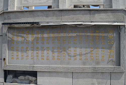 在范蠡像的后面有一个三层台阶的宫殿,里面供奉着“刘备、关羽、张飞”。在台阶的扶手上可这鲤鱼莲花和龙,因为这个工程还没有完工,所以实践成员在参观完范蠡像后离开了园区。政府工作人员再知道我们要步行回旅店后决定派车送实践成员回去。