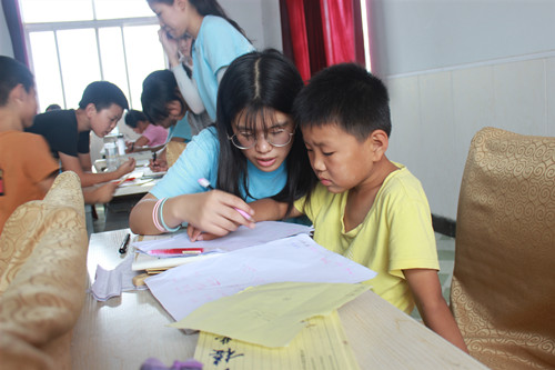 在来到太阳村一天之后,团队成员们也已适应该处环境,了解了诸多事宜。一日之计在于晨,成员们在清晨早早起床与孩子们一同进行体育锻炼,增强身体素质。早餐后,孩子们稍作休整并组织在活动大厅进行暑期补习。成员们根据年级教学安排分别与各自年级孩子共同学习,为提高员工学习积极性,使他们更好地发挥学习上的主观能动性,实践团成员根据孩子们学习现状改变传统教学方式,结合实际情况为孩子们量身定做学习方法,采取一对一、一对二、一对多、多对一等形式为孩子辅导。下课后成员们与值班孩子共同打扫教室卫生。