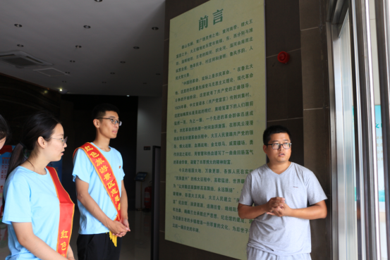“今天又是在《共产党宣言》纪念馆的一天,不过今天我们不再是作为参观者和学习者,在经历了几天的学习和了解之后,我们成为了志愿者。岁月如梭,当年的硝烟已经散尽,纷飞的弹雨已化为泥土,馆内首本《共产党宣言》,见证了沧桑的历史。来自各地的党员和员工们也都来这里重温那段鼓舞人心的岁月,我们带着红色的绶带,为来访者介绍和指引,第一次与《共产党宣言》离得这么近,我们身上也多了一份责任。尽管炎炎烈日,实践团的小伙伴们没有一人后退。一天的时间,我们切身的感受了革命人默默无闻,无私奉献的为党和人民工作甚至牺牲的精神,在以后的生活中,如果有机会,我们一定会坚持志愿服务,在实践中学到更多的东西。”实践团成员邓伟说道。