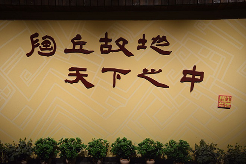 在潘馆长的简单介绍后,实践成员来到了定陶历史文化展。讲解员李英杰带领实践成员参观展馆。进入展馆,刻着“陶丘故地、天下之中”八个的墙壁映入眼帘。跟着李讲解员向前走,大量的历史文物出现在眼前。
