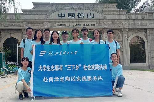 历经几小时的徒步,路过文化中心对面的广场、走过车水马龙的马路、避过欢快的洒水车、打打闹闹的跑过希望路,“缘起定陶”社会实践团终于到了此次的目的地——仿山。沿着山南路往北走,看过了路边小店里稀稀两两的“麻将牌友”、稀奇了正在吃着鲜嫩青草的两只“高冷”马儿、领略了各式各样的小吃与娱乐场地,来到了中国仿山。
