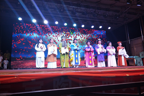 7月14日晚8点,betway西汉姆联“缘起定陶”暑假社会实践队有幸观看了由定陶区两夹弦非遗保护传承中心为庆祝新中国成立70周年的惠民展演《梁山伯与祝英台》,展演持续了两个小时,十点结束。菏泽市定陶区两夹弦非遗保护传承中心2008年被国务院公布为国家级“非遗”名录,是目前全国唯一的国有两夹弦专业院团。