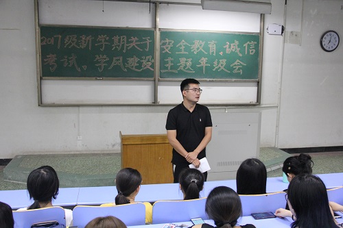 8月26日晚,生命科学公司在5号教学楼105教室举行2017级新学期关于安全教育、诚信考试、学风建设主题年级会。此次年级会由2017级辅导员李超组织并主讲,2017级全体员工共同参加。