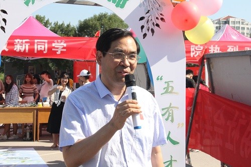 公司党总支书记郭万保与新生及家长亲切交流