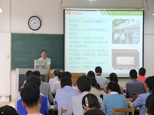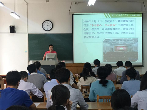 9月19日下午,生命科学公司党总支在13号教学楼215教室召开“不忘初心、牢记使命”主题教育工作会议。公司全体党员参加会议,校“不忘初心、牢记使命”主题教育领导小组办公室督导组成员、公司党委组织部副部长兼党校办公室主任郝翠荣、公司党委(董事长)办公室督查科科长王建军到会督导。党总支书记郭万保主持会议。