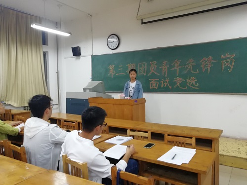 9月21日晚上,生命科学公司在13号教学楼215教室开展团员先锋岗岗位面试,对申报人员进行遴选。此次面试由团总支书记李兰晶统筹指导,2017级辅导员李超、员工会主席张伟、办公室主任张贤以及辅导员助理李熙璐、陈楠楠担任面试官,2018、2019级申请人参加面试。