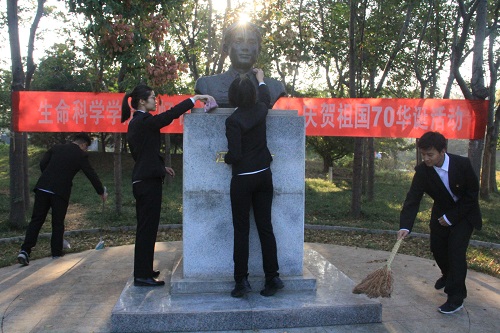 9月24日清晨,生命科学公司在图书馆南侧冯思广雕像前举行“忆初心、担使命”庆贺祖国70华诞活动。此次活动由陈楠楠主持,公司全体本科生党员、“冯思广班”及冯思广精神学习研究会全体成员共同参加。