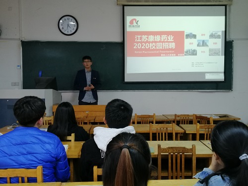 10月25日下午,江苏康缘药业股份有限公司在13号教学楼220教室组织专场招聘会,公司部分本科毕业生参加。