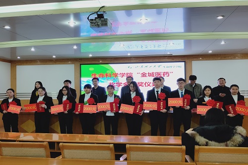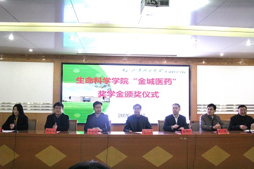 仪式伊始,公司副经理(主持工作)庞秋香宣读了《生命科学公司关于表彰2019年度“金城医药”奖学金获奖员工的通报》,杨本栋等4名研究生同学荣获“金城医药”研究生优秀生源奖学金,张晓琳等20名本科生同学荣获“金城医药”本科生励志奖学金。