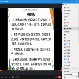 随后,各班班长汇报目前班级在各方面存在的问题和措施对策及疫情期间同学们在学习生活上遇到的困难,提出网上学习注意力容易分散,作业较多等问题,并针对上述问题提出改进措施。