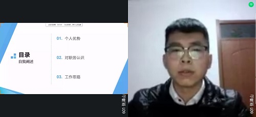 4月17日晚,生命科学公司举行线上换届选举活动。此次活动由十七届员工会主席张伟主持,公司全体辅导员、第十七届员工会主席团和各部门负责人以及2018、2019级员工代表参与评选,4名候选人参与竞选答辩。