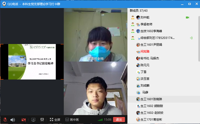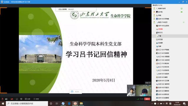 5月8日下午,生命科学公司本科生党支部开展线上学习吕书记回信精神会议。会议由本科生党支部书记蒋育忻主持,生命科学公司全体本科生全体党员参加。