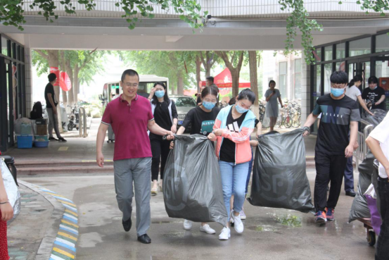 党员志愿者们分为男女两组,早早便就位于毕业生宿舍公寓楼下,帮助毕业生搬送行李。“学姐,我来帮你吧!”这是志愿者们最常说的话。大大小小的箱子,汗水沁透的衣衫,志愿者们帮忙搬运行李,充分展现了不怕苦、不怕累的良好精神风貌,他们各司其职,坚守岗位,充分展现新时期老员工党员的先锋形象,埋下一粒志愿服务的种子,在六月的校园闪闪发光!