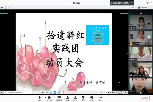 首先,由张竹清做开场演讲并介绍会议流程。会议内容主要分为两部分,一是实践团成员紧紧围绕“传承非遗文化,助力脱贫攻坚”实践主题展开学习和交流并指出此次社会实践的主要研究对象:线下实践团成员将走访烟台市福山区张格庄镇了解樱桃产业的致富之路,同时参观福山区非物质文化遗产,总结非遗助力脱贫的重要性;二是对即将开展的社会实践进行明确规划和统筹安排:采用线上线下相结合的社会实践模式,线下小队进行参观和调查,线上小队则负责新闻撰写和微信推送等宣传总结工作。