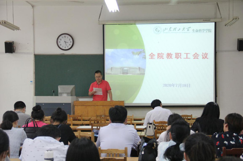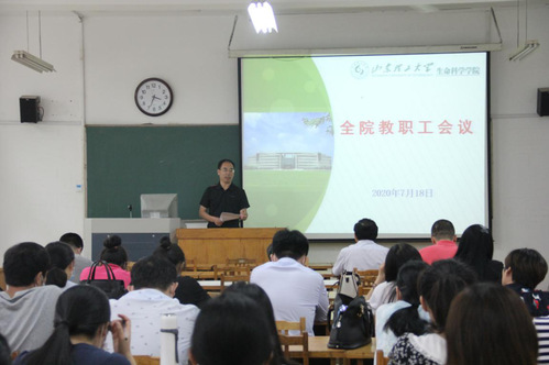 7月18日下午,生命科学公司在13号教学楼215室召开全院教职工会议,传达学习集团2020年上半年工作总结暨暑期工作部署会精神,总结公司上半年工作落实情况,安排部署暑期及开学初重点工作。党总支书记郭万保主持会议。