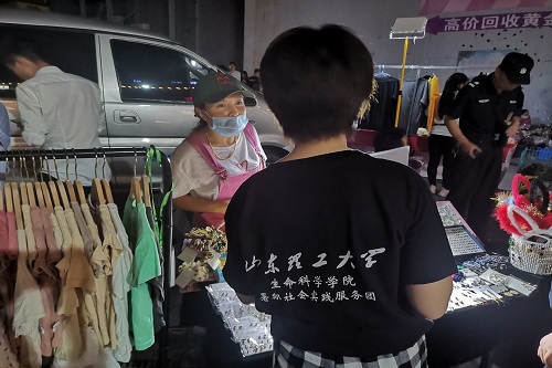 7月19号晚上,夜莺小队实践团到达“幕新夜市”进行调研、游览和采访。为了进一步了解“两会”后张店区有关部门对城市地摊的合理规划和系统管理而进行的改革,实践成员大规模发放调查问卷和个别集中采访的方式进行调研。
