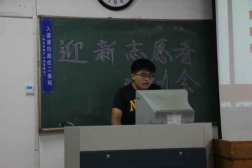 刘凯伦在培训中围绕志愿者的身份认同,志愿服务的基本原则、基本礼仪,迎新志愿服务注意事项和迎新志愿者剪影等方面进行了分享与交流,号召全体志愿者“做志愿工作,少一些功利主义地追求,多一些不为什么的坚持”。