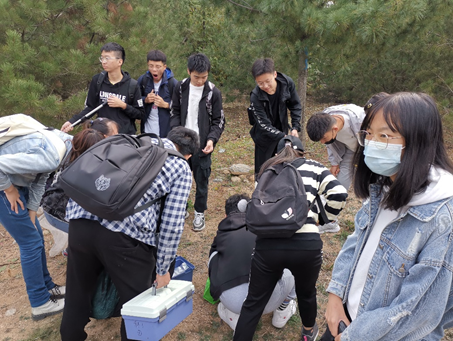 野外实习团队首先来到了下小峰村苗木园参观园林苗木。同学们在老师的带领讲解下学习生物知识,动手采集物种标本。