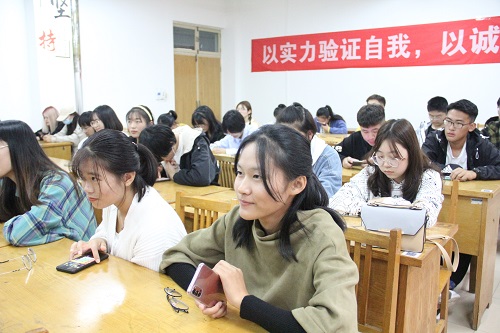 现场气氛活泼又不失严肃,热闹且秩序井然,各部分负责人、现有工作骨干担任评委,2020级新生候选人参加此次活动。
