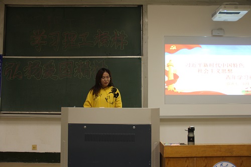 随后,农工公司青年学习社陈雪为同学们介绍了建党以来的几大标志性事件重点突出习近平新时代中国特色社会主义思想。习近平新时代中国特色社会主义思想从理论和实践结合上系统回答了新时代坚持和发展什么样的中国特色社会主义、怎样坚持和发展中国特色社会主义这一重大时代课题,深入回答时代之问,不断引领前进,是新时代精神的精华。