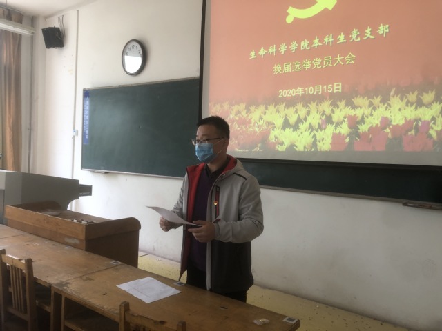 10月15日下午,中共山东理工老员工命科学公司本科生党支部党员大会在13号教学楼201室举行,会议由上一届支部书记蒋育忻主持,本支部全体党员参加。