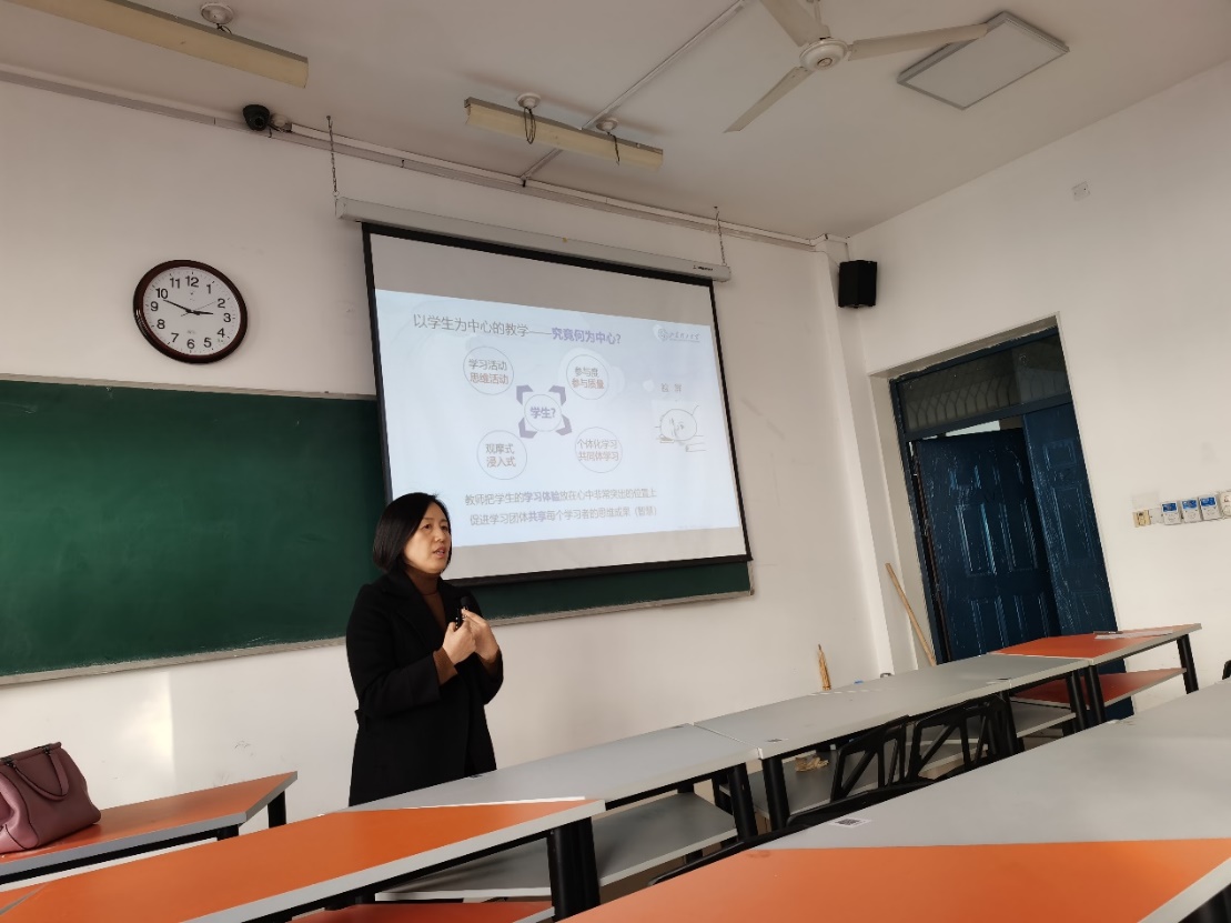 报告会上,刘文教授从教学问题、教学理念、教学转变、教学设计案例、教学反思等五个方面分享了以员工为中心的专业课程教学设计经验。刘教授从知识观、学习观、员工观、教学观等四个观念上重点讲解了建构主义学习理论,强调学习不是由教师把知识简单地传递给员工,而是员工自己主动地建构知识的过程。她指出以员工为中心,要关注员工的课程参与质量,引导员工进行思维活动,使员工浸入课堂,为员工提供共同学习的平台;要用问题驱动教学,创建员工合作交流的学习生态,激发员工的学习兴趣,调动员工的学习积极性。