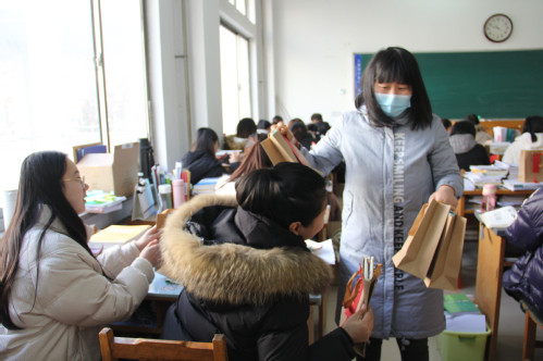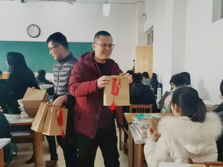 现场,师生互道祝福和感谢,简短的温情互动为学子们紧张的冲刺备考带来了些许轻松,温馨的一幕幕更为寒冷的冬日平添了浓浓暖意。