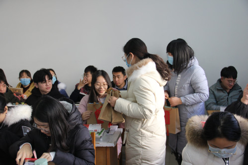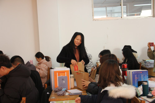 “自习室学习冷不冷”“天冷了,注意添衣服,保重身体”“考研加油,等大家好消息”一句句暖心的问候,一声声贴心的叮嘱回荡在考研自习室里。从老师手中接过考研礼包时,同学们激动幸福之情溢于言表。