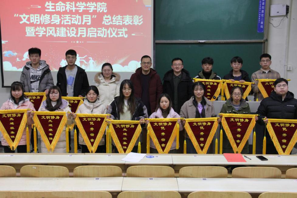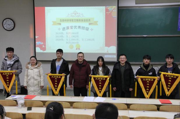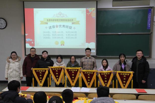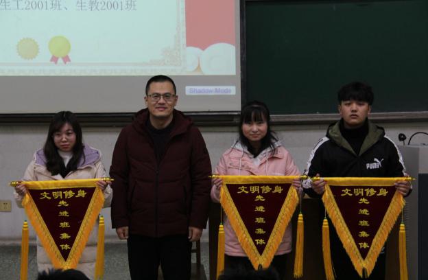 12月17日下午,生命科学公司首届“文明修身活动月”总结表彰暨学风建设活动月启动仪式在4号教学楼305室举行。公司党总支副书记陆广峰出席活动,辅导员翟静涛、陈颖洁,员工会各部门负责人、2018-2020年级各班班委参加。院员工会主席于肖童主持活动。
