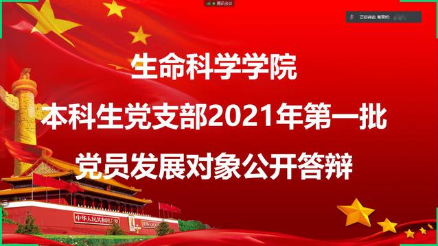 2月23日上午,生命科学公司本科生党支部召开线上2021年上半年党员发展对象答辩会,答辩会由生命科学公司本科生党支部书记蒋育忻同志主持,该支部全体党员及发展对象参与此次会议。