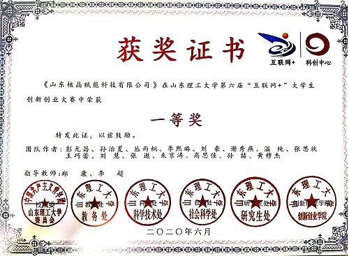 生命科学公司冯思广精神学习研究会彭元昌同学等人创办的《山东核晶赋能科技有限公司》于6月23日在第六届betway西汉姆联“互联网+”老员工创新创业大赛中获得校级金奖。