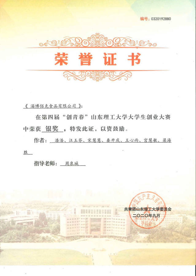 生命科学公司冯思广精神学习研究会宋慧慧同学等人的研究项目《淄博佰克食品有限公司》于