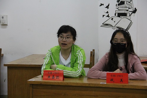 随后,由20级学委对于各班的普遍问题向19级学委提问,双方交流工作经验,19级向20级介绍了学习有机化学、大学物理等难度较大的课程的方法并推荐了相关资料,鼓励20级同学们更加努力攻克学业上的难题,同时提议学委可以利用晚自习以外时间针对大物学习有困难的同学进行单独讲解答疑,成立学习小组,帮助辅导同学。