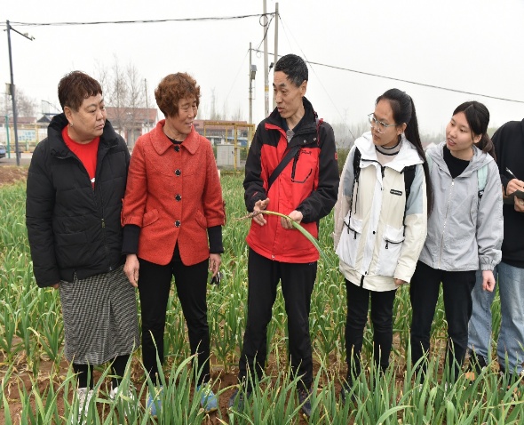 为践行习近平总书记“把论文写在祖国大地上”的殷切嘱托,增强科研成果转化在乡村振兴建设中的作用发挥,提升员工理论联系实际能力。自3乐器,由公司师生组成的助农实践团,多次前往淄博市高青县山东福园农业科技有限公司孟荆陈村大蒜种植基地,实地查看前期实验成果在植株生长中的应用情况,为优质高产大蒜的科学种植管理进行技术指导。