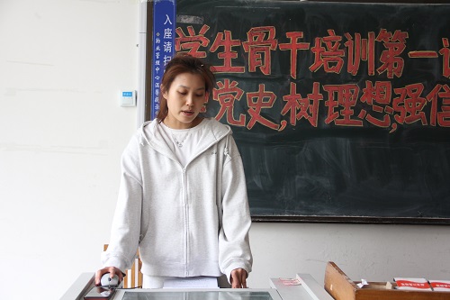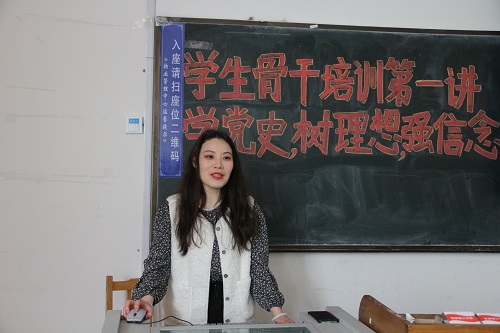 培训伊始,宣讲团成员管雅倩、牟一凡以“光辉历程,伟大成就”为主题进行宣讲,她们从党史发展脉络及学习意义、没有共产党就没有新中国、延安整风与马克思主义中国化、党的百年光辉历程的深刻启示四个方面结合中国近现代史重大历史事件展示了中国共产党筚路蓝缕、砥砺前行的奋斗历程和使命担当。宣讲后,管雅倩与现场同学们开展了党史小知识测试活动,同学们积极思考、勇于作答,现场气氛活跃。
