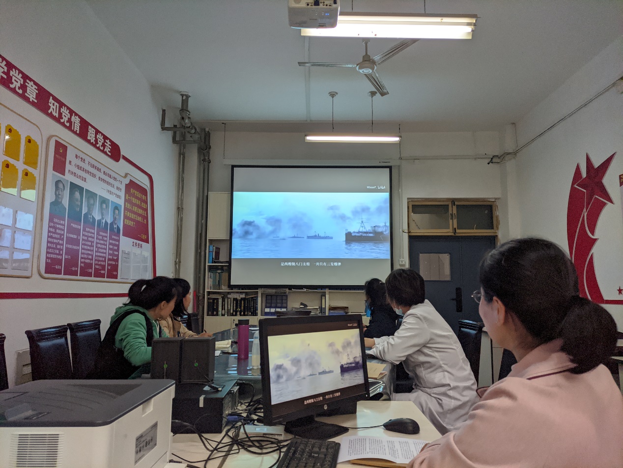 会后,制药工程系与生物医药研究院教工党支部开展了党史学习活动,部分制药工程系教师和入党积极分子参与了此次学习。本次党史学习活动由崔玉婷老师领学,崔老师带领大家回顾了中国海军的发展历程。发端于洋务运动的旧式海军,在党的正确领导下,中国海军从无到有,发展成为让祖国骄傲自豪的国防力量。观看视频后,与会同志谈了自己的学习心得,为新时代人民海军的建设成就点赞。最后,与会同志对下周的外出学习提出了期待,本次党员活动在轻松的氛围中结束。本次党史学习激发了同志们干事创业的动力,党支部的凝聚力得到进一步加强,党建活动和业务工作的结合也更加紧密。