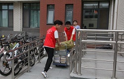 6月25日清早,身穿红色马甲的志愿服务队伍早已分头在各公寓楼下集结完毕,在认真清点小推车等搬运工具后,志愿者整装待发投入到一天的志愿服务活动中。为更好地帮助毕业生完成行李物品搬运等动作,志愿者们分工有序,轮流值守。或在楼下行李安置处看护行李,或深入毕业生宿舍协助收拾清理。一时间,志愿者身影充斥在公寓行人中,在搬抬行李间为毕业季的校园留下了一抹动人的志愿红。