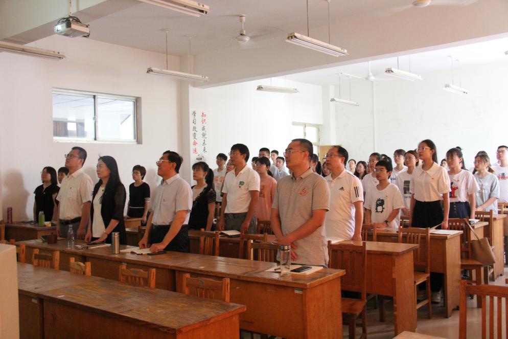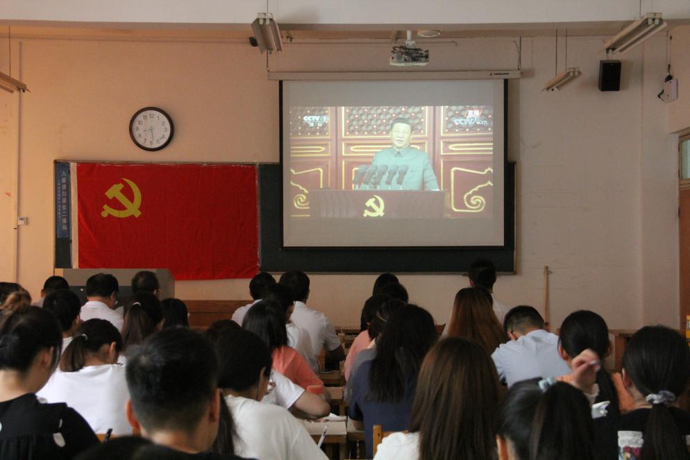 8时许,伴随100响礼炮响彻云霄,庆祝大会在天安门广场隆重开幕。全体党员起立,同唱国歌,向冉冉升起的五星红旗行注目礼。大家满怀激动的心情,全程认真收看了大会直播,仔细聆听了习近平总书记在庆祝大会上的重要讲话。现场,全体党员共同为党庆生的喜悦,以及身为一名中共党员、一名中国人的自豪感与荣誉感,化作了一波接一波的热烈掌声久久回响在教室内外。